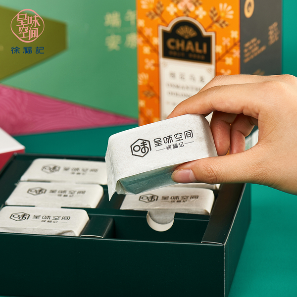 聯(lián)名禮盒經(jīng)過(guò)精心設(shè)計(jì),與往常高大上的包裝多了點(diǎn)出彩的地方是運(yùn)用了粉紅色的包裝,綠色的紙盒腰封像粽子葉一樣相交包裹著原紙盒,粉紅色的內(nèi)盒包裝鑲嵌著祥云的圖騰,顯得很亮眼又高顏值。加上無(wú)界工廠的速度配送,相信收到這份禮盒不僅能有溫度,還有能讓人驚喜的顏值。