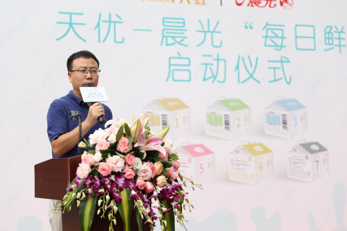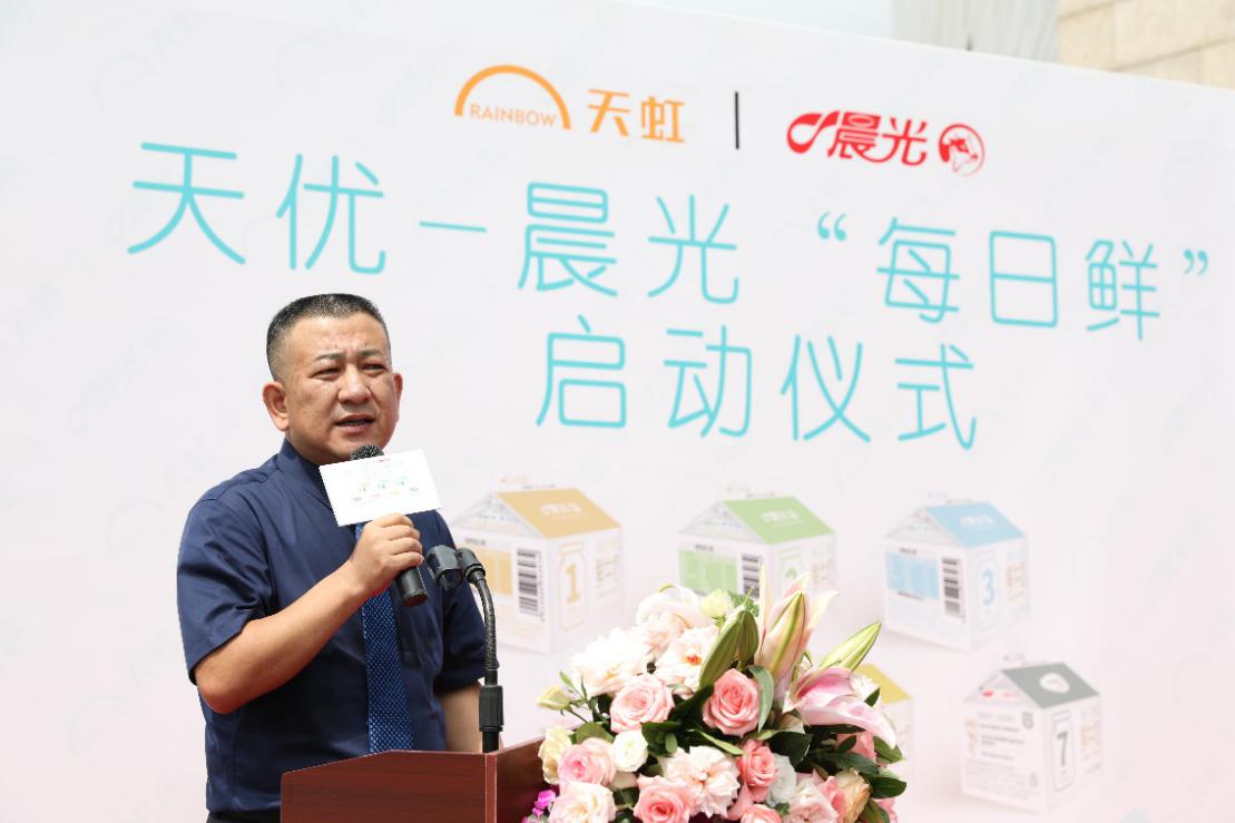 啟動(dòng)儀式當(dāng)天,天虹商場(chǎng)股份有限公司超市事業(yè)部生鮮部采購(gòu)總監(jiān)王曉虎、晨光乳業(yè)總監(jiān)助理郭利文親臨現(xiàn)場(chǎng)并發(fā)表了重要講話(huà),與現(xiàn)場(chǎng)的所有嘉賓和觀眾朋友們共同見(jiàn)證了“每日鮮“項(xiàng)目的啟動(dòng)。