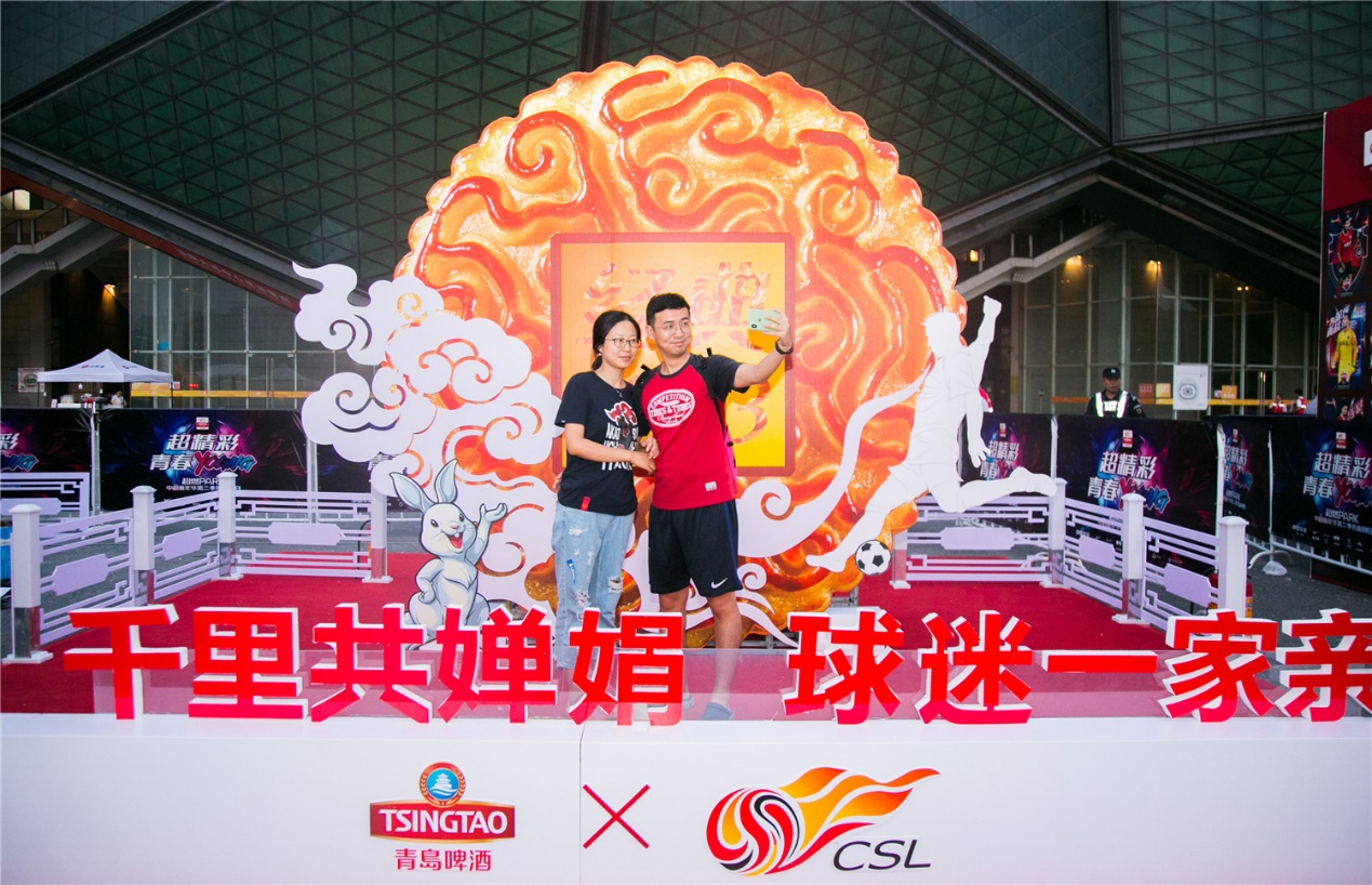 在賽場外,中超贊助商青島啤酒加碼快樂元素,在當(dāng)中秋之夜攜手一同為球迷呈獻(xiàn)豐盛的歡聚盛宴,巨型月餅裝置、cosplay嫦娥玉兔、定制啤酒月餅、球迷霸王餐等互動(dòng)體驗(yàn),為中超比賽注入無限激情與活力。