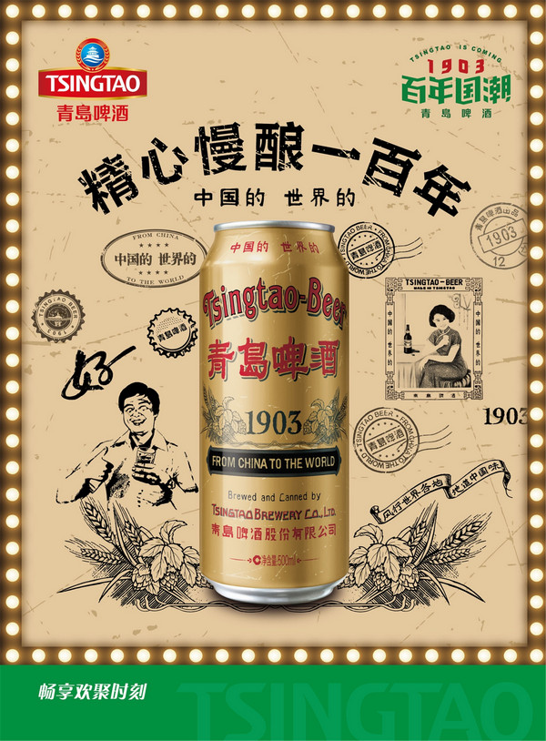 經(jīng)典1903國潮罐是青島啤酒為再造精釀傳奇,傳承青啤文化和品牌魅力的產(chǎn)品。采用源自1903年的“兩段法低溫釀造工藝”,精心慢釀,造就了醇香四溢的口感和體驗(yàn)。罐體上復(fù)刻了百年前經(jīng)典瓶貼畫面,是啤酒中的國潮和時尚的典范。