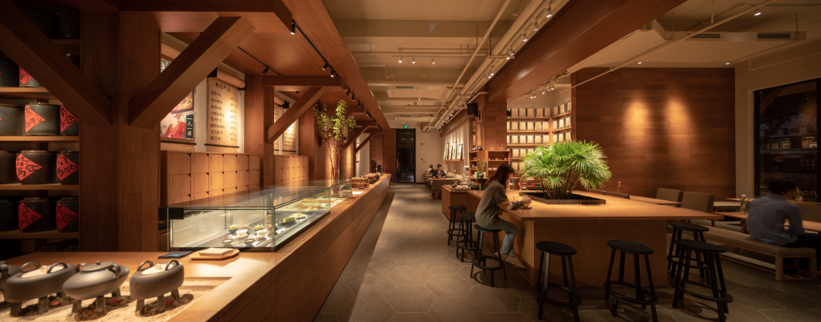 “一個溫暖的會客廳”是tea’stone對所構建的茶空間的定義,也是他們對其所提倡的茶美學生活的表達之一。tea’stone團隊有著深厚的空間美學造詣,在傳統(tǒng)的基礎上做減法,沉浸式的開放空間,選取東方美學的核心因素,以傳統(tǒng)梁柱,斗拱和椽檁,勾勒出當代簡約的茶空間,呈現(xiàn)出精制溫暖的格調(diào),家私、櫥窗、花藝凡見種種,皆散發(fā)著和諧雅致的美感。簡潔,現(xiàn)代,精致,溫暖,再結(jié)合“一人一席”的飲茶方式,讓喝茶這件事完整靈動,并且稱得上具有美感的生活方式。難怪能看到越來越多的人們抱著筆記本坐在tea’stone里面獨處、辦公、會友?,F(xiàn)代中國人的“第三空間”從此又有了新的選擇。