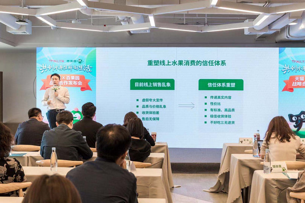 見圳客戶端·深圳新聞網(wǎng)2019年11月30日訊 11月29日,天貓與百果園在深圳阿里中心舉行戰(zhàn)略合作發(fā)布會,天貓大食品總經(jīng)理無齡、大食品果蔬冰運營負責人思豪,百果園集團副總裁焦岳、電商負責人孫鵬出席會議并發(fā)表演講。本次發(fā)布會以“共創(chuàng)水果生鮮好生活”為主題,雙方計劃通過優(yōu)勢互補和資源整合,從水果到生鮮進行全面深入的戰(zhàn)略合作。