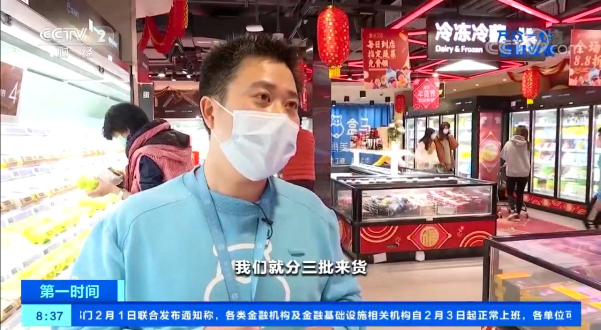 在政府持續(xù)保障貨源供應的背景下,鐘天平所在的超市加大了批發(fā)市場進貨的頻次,到了初六,供應狀況已經恢復正常。“像蔬菜的銷量是平常十倍左右,分三批來貨,我們每天要補充三次貨架,早上一次、中午一次、晚上來一次?!?/p>