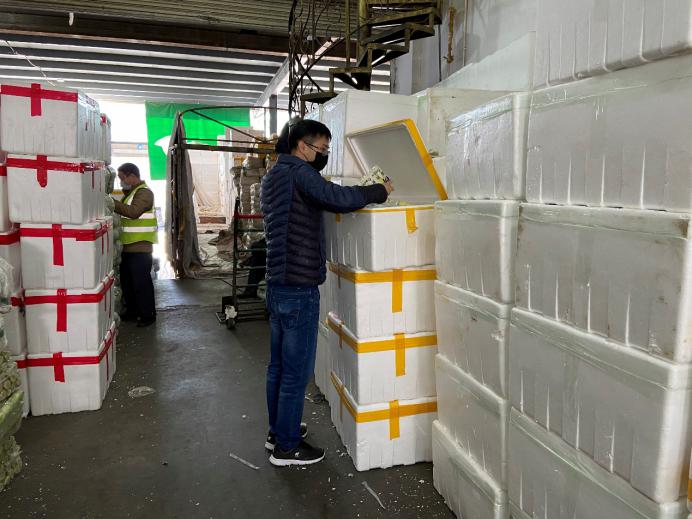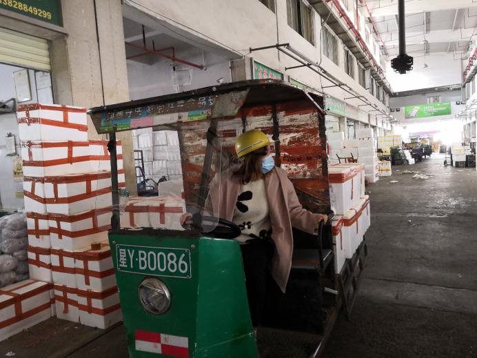 市場的檔主、物流車司機、加工工人,全部都帶上口罩,看新聞講跟人講話要保持距離,但忙起來真顧不了那么多,大家都在“搶貨”,這頭跟檔主商量好,那頭貨可能被拉走了?!柏浺阶约旱募庸ぶ行?,才算是你的。”因為春節(jié)批發(fā)市場的檔口工人回去一大半了,沒人送貨,緊張的時候,有女同事干脆自己借一輛三輪車,把談好的貨源直接拉走。
