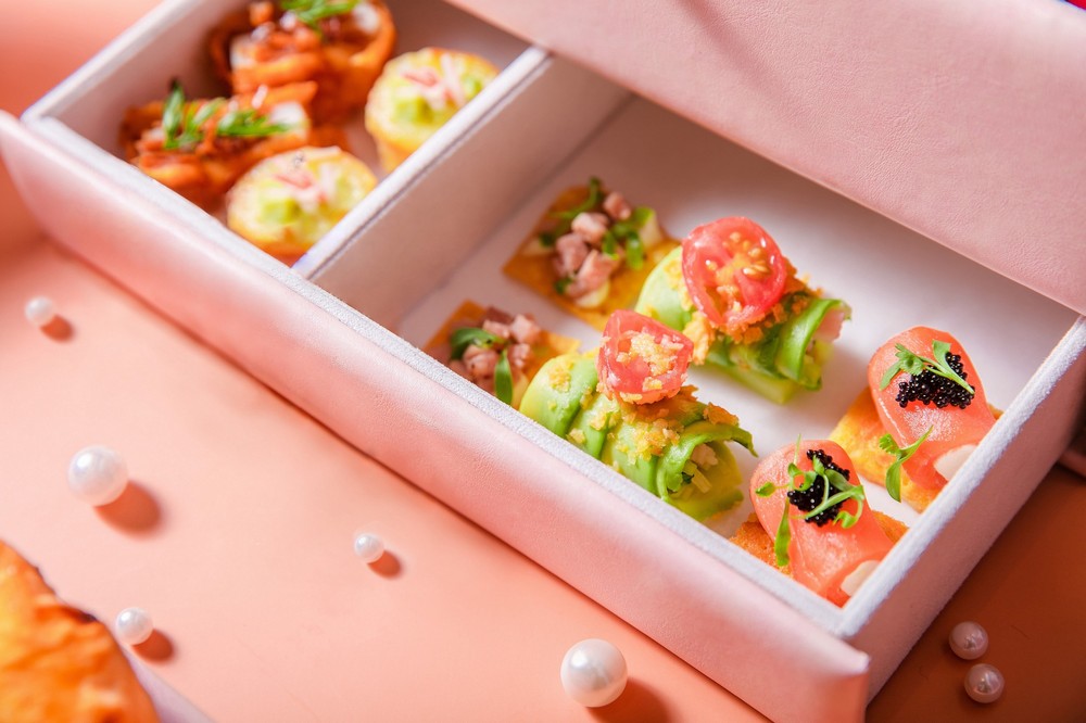 酒店餅房廚師長趙偉擅用巧心妙思,選用當(dāng)季新鮮食材融入珠寶盒主題元素,打造了數(shù)款異彩紛呈的甜品佳作:熱情果芝士蛋糕,在醇厚的芝士中感受果酸與乳酸交融的獨(dú)特口感,滿是清雋;當(dāng)堅果邂逅漿果,便有了開心果樹莓蛋糕,輕咬一口,充沛著滿滿榛果與水果的微妙風(fēng)味與余韻;絲滑濃郁的奶油包裹著香脆奧利奧,咸中帶甜,佐以鮮果點(diǎn)綴,鮮甜可口;芒果冰沙化身成乖萌小熊搭配綿密甜軟的芒果肉,西米與西柚增加口感的跳躍,古早味的楊枝甘露也倏然變得俏皮動人。咸點(diǎn)也是不可錯過的味蕾禮賞:肉質(zhì)鮮嫩的蟹肉和清新爽口的牛油果巧妙融合,呈現(xiàn)海陸鮮甜交匯的美妙體驗;肉質(zhì)滑順的脆炸帶子配帕爾瑪火腿脆片,是鮮甜后揮之不去的綿長醇香。隨下午茶搭配的新鮮烘焙司康餅,兩杯無酒精香檳或無酒精雞尾酒,更增添午后曼妙意趣。 (常軍平 )