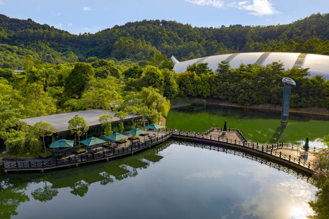 百歲山生產(chǎn)基地坐落在羅浮山脈腳下,整個(gè)工廠與周?chē)淖匀簧鷳B(tài)融為一體。進(jìn)入廠區(qū)后,整潔開(kāi)闊的道路、郁郁蔥蔥的樹(shù)木、頗具藝術(shù)感的銀龜型廠房,都讓人不敢相信這里是一個(gè)工廠,簡(jiǎn)直就是旅游景區(qū),也太美了吧!