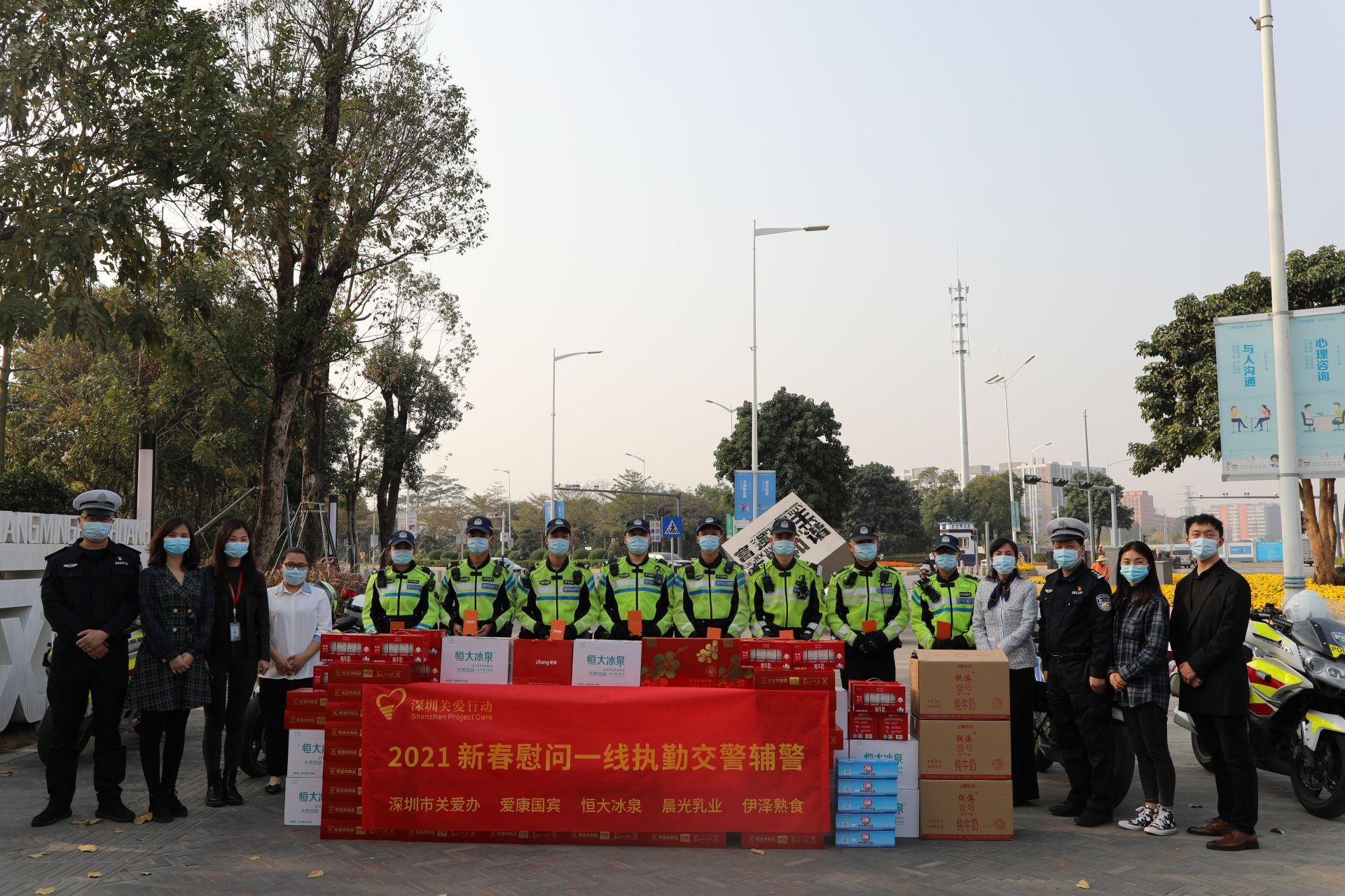 見證客戶端·深圳新聞網(wǎng)2021年1月28日訊 (記者 常軍平)“留深過大年,關(guān)愛滿鵬城”。1月27日,第十八屆關(guān)愛行動(dòng)舉行了關(guān)愛交警輔警活動(dòng),市關(guān)愛辦聯(lián)合晨光乳業(yè)等數(shù)家企業(yè)向光明區(qū)交警送去新年大禮包。