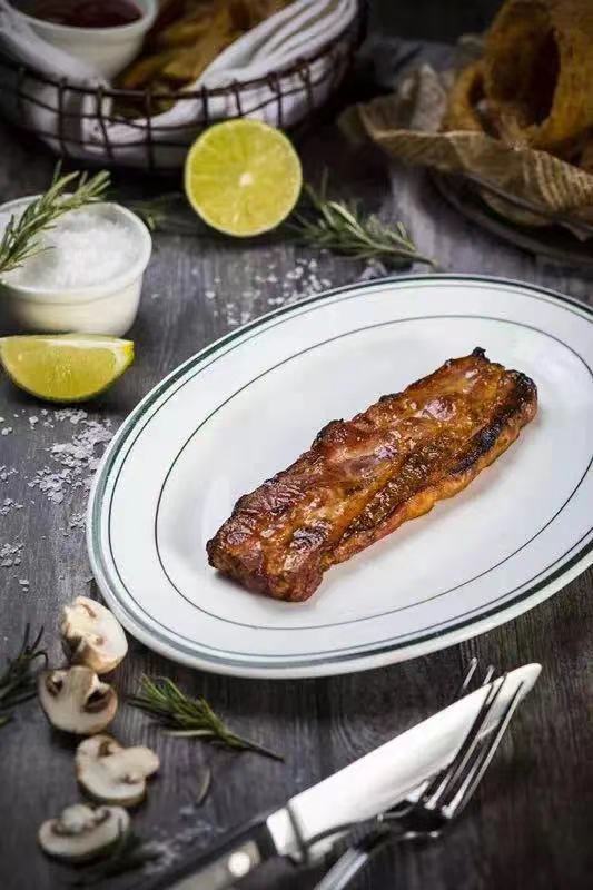 超厚焦脆培根同樣令人驚喜,精選大塊五花肉,手動(dòng)刨成手指厚度的培根肉,先煎后烤,外皮烤得焦脆,內(nèi)里卻嫩到不可思議。