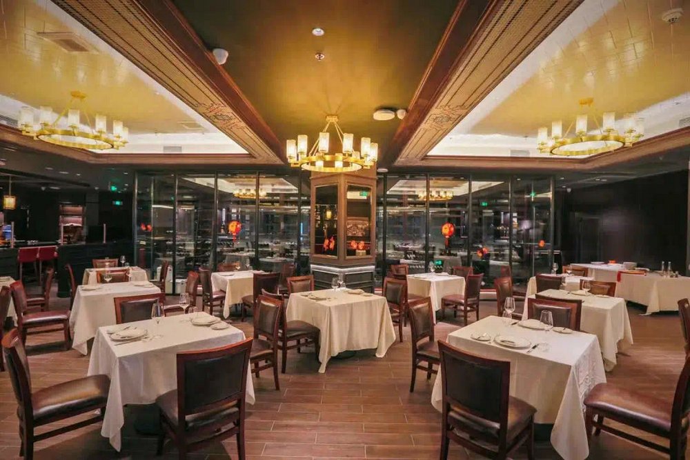 推開大門,經(jīng)典又熟悉的美式風(fēng)格撲面而來。溫暖的胡桃木地板、用于營造私密氛圍的對點(diǎn)投射燈光、懸掛著白玉石吊燈的瓷磚天花板、豐富的藏酒、自由悠揚(yáng)的爵士樂、熱情周到的專業(yè)服務(wù)……可以說,完美傳承了沃夫?qū)回炓詠淼募~約爵士格調(diào)與美好用餐體驗(yàn)。