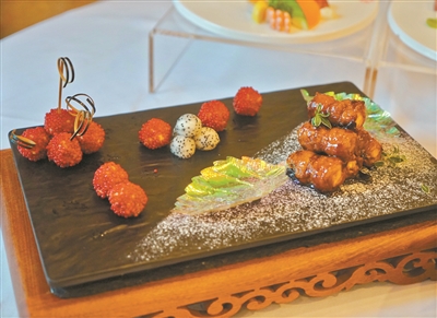 廣東點心以“四大天王”享譽世界,“筍尖鮮蝦餃”與“蜜汁叉燒包”更是人們“飲茶”風俗的必點。據(jù)介紹,紅棉華宴呈現(xiàn)的點心“玉液叉燒包”,是粵菜師傅們?yōu)楸磉_對陳勛等一輩點心泰斗的尊重和敬意而設(shè)。粵點技藝中的面塑,被譽為“南派”,尤以嶺南時果為著名,紅棉華宴的壓軸出品便是“面塑嶺南果”,將嶺南時果運用面塑技藝呈現(xiàn)出來。