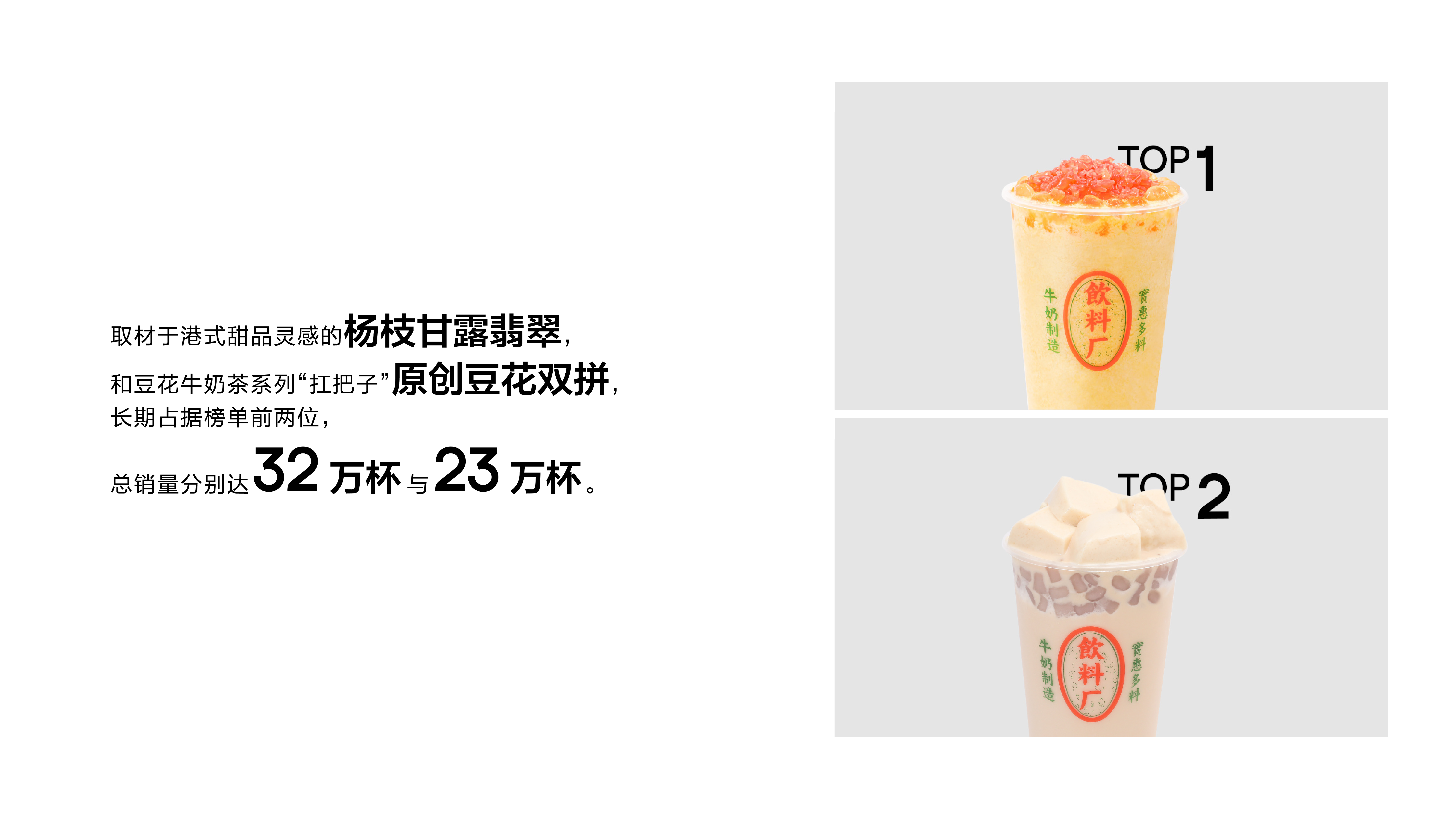 同時(shí),在產(chǎn)品布局上,喜小茶依托于喜茶的研發(fā)實(shí)力,并不追求單一品類爆款,而是從一開始就全面開花,以明星產(chǎn)品梯隊(duì)的形式,創(chuàng)造全面、驚艷的用戶口碑。具體來說,喜小茶的產(chǎn)品矩陣從最初開業(yè)時(shí)的20款產(chǎn)品、三類主打產(chǎn)品線擴(kuò)充至28款產(chǎn)品、五類主打產(chǎn)品線,包括原創(chuàng)蛋糕牛奶茶、原創(chuàng)豆花牛奶茶、清幽雪頂茶、牛奶茶和果茶系列。其中,復(fù)刻“皇茶”時(shí)期熱銷單品的蛋糕牛奶茶,回歸上市后即刻引發(fā)了許多喜茶老粉的追捧,累計(jì)銷量突破16萬杯;長期占據(jù)榜單前兩位的楊枝甘露翡翠和原創(chuàng)豆花雙拼,總銷量分別達(dá)32萬杯與23萬杯。