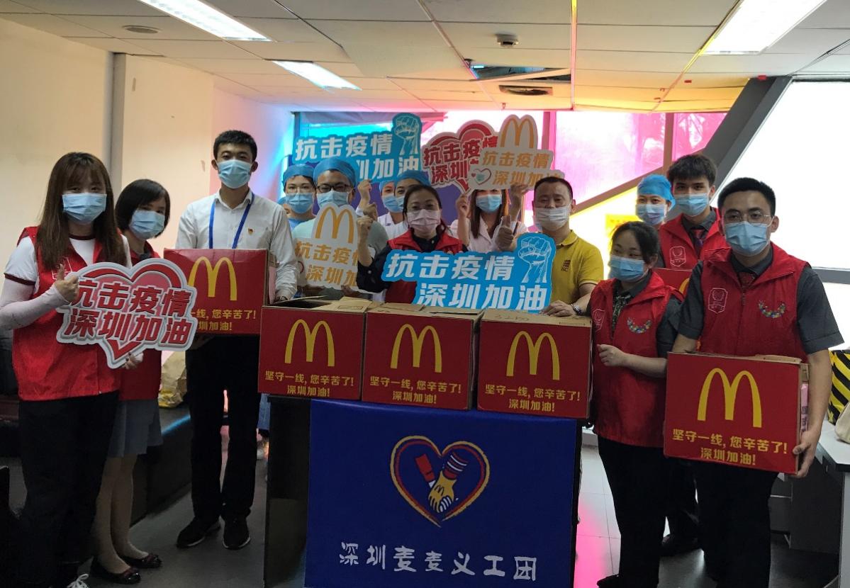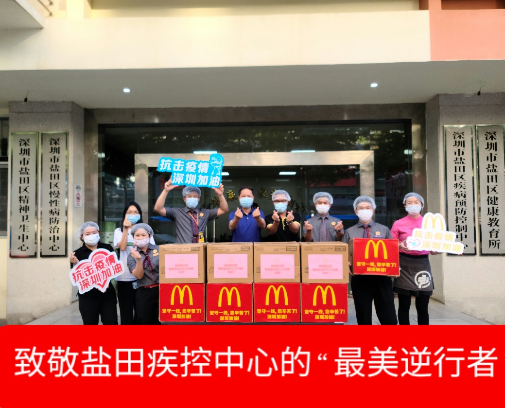 深圳麥當(dāng)勞“麥麥義工團(tuán)”小伙伴們向鹽田疾控中心防疫工作一線的醫(yī)護(hù)人員贈(zèng)送愛心餐食