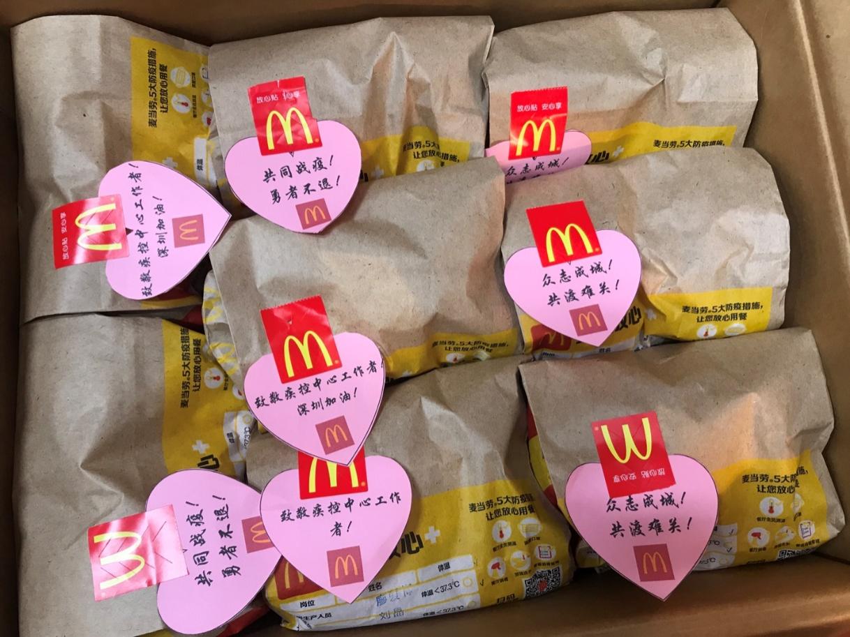 深圳麥當(dāng)勞“麥麥義工團(tuán)”小伙伴們向龍崗疾控中心防疫工作一線的醫(yī)護(hù)人員贈(zèng)送愛心餐食
