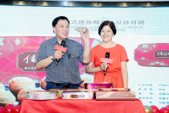 佳寧娜食品深圳首席品牌官及運(yùn)營(yíng)總監(jiān)潘小兵在活動(dòng)現(xiàn)場(chǎng)講解2021年熱銷(xiāo)月餅