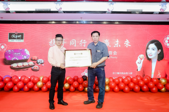 中際烘焙協(xié)會(huì)劉科元會(huì)長(zhǎng)為佳寧娜頒授“2021中國(guó)烘焙十大金牌月餅金獎(jiǎng)”榮譽(yù)