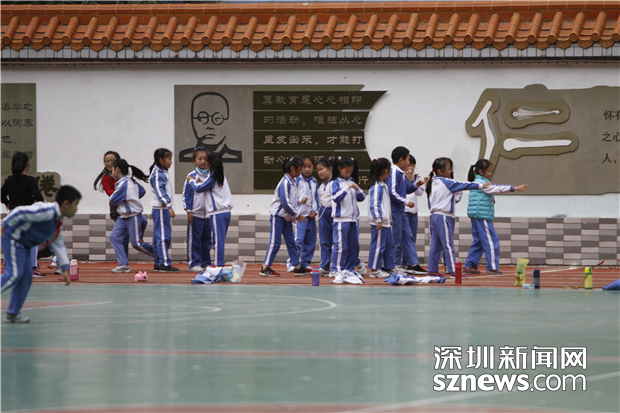 中放學(xué)后,羅湖螺嶺外國語實(shí)驗學(xué)校二部不少學(xué)生聚集在操場上,等待父母接送回家