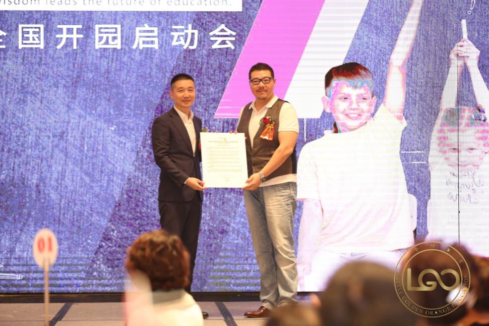 會上,金潔董事長向《爸爸快長大》中宋大楠的扮演者馮粒先生頒發(fā)了“愛心大使”委任狀,宣布成立家長學(xué)院。馮粒先生作為小金桔China Basics首位“愛心大使”,鼓勵(lì)社會各界力量積極參與,提倡科學(xué)育兒,積極探索中國文化的傳承,實(shí)現(xiàn)“中國夢”走出去。