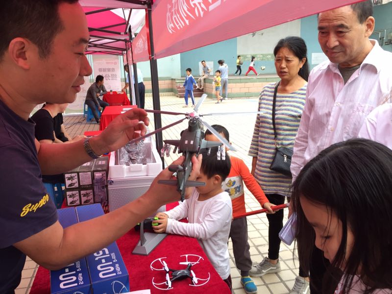 “哇,看它飛起來了”廣場另一邊,總簇?fù)碇蝗喝汉教炜萍济?,在現(xiàn)場操控員的引導(dǎo)下,不少小朋友躍躍欲試,伴隨著啟動(dòng)到起飛,方向控制,無人機(jī)一次次在歡呼雀躍聲中騰空飛躍......騰宇達(dá)航空航天科技產(chǎn)業(yè)有限公司的無人機(jī)項(xiàng)目點(diǎn)燃了青少年的航天夢,通過現(xiàn)場引導(dǎo)與試飛,給航天迷打造樂園同時(shí),也傳播了無人機(jī)飛行相關(guān)科普知識(shí),對激發(fā)青少年航天興趣具有重要作用。