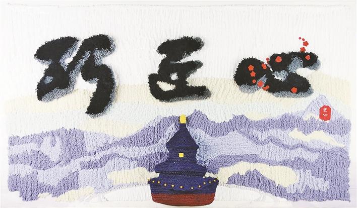 值得一提的是,巧匠心館展出作品偏重于表現(xiàn)“線”的視覺美感。大型纖維作品《巧匠心》吸引了許多觀展市民的眼光,該作品融合了鉤針、編織、植絨等多種技法,作品配色清新淡雅,色彩過(guò)渡自然,作品上呈現(xiàn)出來(lái)的天壇形象由3D打印而出,十分具有立體感。