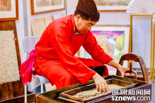 塔城東巴造紙第七代傳承人李學(xué)高在現(xiàn)場(chǎng)持續(xù)“敲、打、洗、晾”的一系列工序,演繹東巴造紙的精湛工藝。東巴紙被稱為“活化石”,是采用納西地區(qū)稀有植物的樹(shù)皮制作而成,這些“千年不腐”的東巴紙不僅可用于書(shū)寫(xiě),添加花瓣、樹(shù)枝后的東巴紙燈用作裝飾也非常好看。