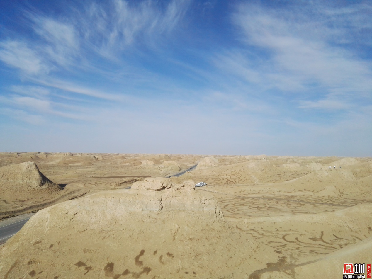 沒(méi)去到魔鬼城,但公路兩邊的雅丹足矣震驚。關(guān)于風(fēng)蝕性地貌地理書(shū)上有段非常貼切的說(shuō)明:“地表沙塵和碎屑被風(fēng)力侵蝕搬走,常形成戈壁和裸巖荒漠”。無(wú)法想象,四面八方、看不見(jiàn)盡頭的全是一個(gè)一個(gè)有著陡壁的小山包,安安靜靜,不急不躁,好像身處一副巨大的畫(huà)卷中,我們真的非常渺小。云彩已是畫(huà)好的,小山包也是畫(huà)好的,而時(shí)間不再流逝。