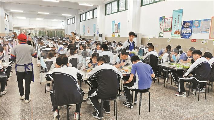 “學(xué)校食堂飯菜可口,有多種可以選擇?!泵妨种袑W(xué)高三(7)班學(xué)生劉嘉琳表示。據(jù)悉,返校當(dāng)天,該校高三年級有480多位學(xué)生在學(xué)生餐廳和改造后的乒乓球場定人定座就餐。