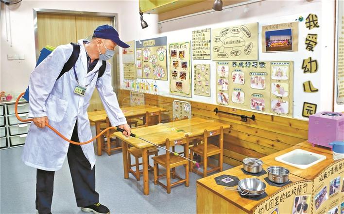為做好開(kāi)園準(zhǔn)備,前日,南山區(qū)教育幼兒園聘請(qǐng)專(zhuān)業(yè)消殺公司對(duì)園區(qū)進(jìn)行消殺。深圳特區(qū)報(bào)記者周紅聲攝