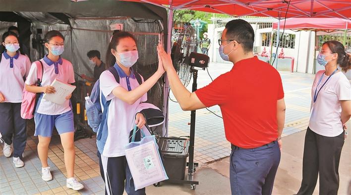 今年中考比往年推遲了一個(gè)月,考試期間天氣炎熱,為了給考生創(chuàng)造優(yōu)良的考試環(huán)境,在做好組考工作的同時(shí),市、區(qū)教育和招考部門(mén)、各考點(diǎn)以人為本,優(yōu)化服務(wù)考生措施。各考點(diǎn)均設(shè)置了更衣室,準(zhǔn)備了雨傘、毛巾、備用校服、涼茶、糖水,搭建遮陽(yáng)避雨長(zhǎng)廊,安排候考休息室,努力營(yíng)造安全舒適的考試環(huán)境。許多考點(diǎn)提前聯(lián)系疾控部門(mén),對(duì)考點(diǎn)進(jìn)行專(zhuān)業(yè)消殺,并為突發(fā)疾病的考生提供醫(yī)療服務(wù)和現(xiàn)場(chǎng)核酸采樣、送檢服務(wù),為考生提供便利。