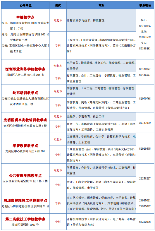 深圳開(kāi)放大學(xué)2021年春季招生教學(xué)點(diǎn)與專業(yè)公示