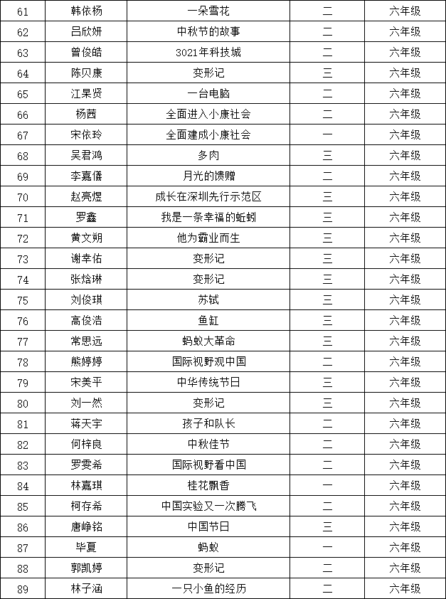 自2021年1月,活動征稿啟動以來,獲得了深圳市廣大中小學(xué)生、教師、文學(xué)愛好者的熱烈響應(yīng)積極參與,吸引了深圳百余所學(xué)校的上萬人關(guān)注報名?,F(xiàn)公布龍華區(qū)丹堤實驗學(xué)校晉級復(fù)賽名單如下: