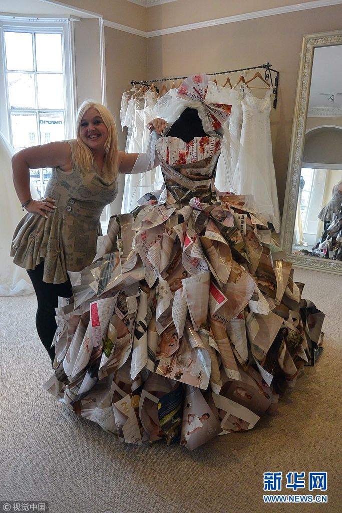 ????2015年3月23日消息(具體拍攝時間不詳),英國,服裝設(shè)計師Kelly Currie利用舊的新娘雜志精心制作了一套婚紗,并在Bawtry時裝周閉幕時同其它禮服一起參加了新娘時裝秀。 (圖片來源:視覺中國)