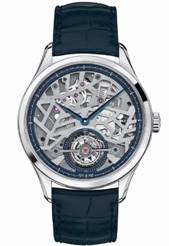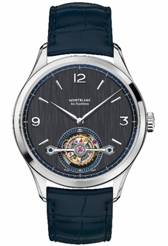 ????萬寶龍傳承精密計(jì)時(shí)系列外置框架陀飛輪超薄鏤空腕表搭配藍(lán)色劍形指針和全新藍(lán)色鱷魚皮表帶,盡顯極致優(yōu)雅。