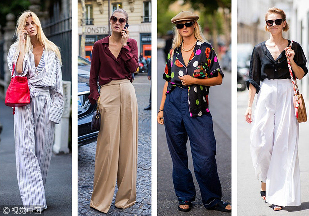 ????入秋說冷不熱,說熱不冷,想要入秋瀟瀟灑灑,襯衫+闊腿褲的套裝百試不爽,輕松拿下氣場。無論你是職場新人還是老油條!基本時(shí)髦套路輕松應(yīng)對。(圖片來源:視覺中國)