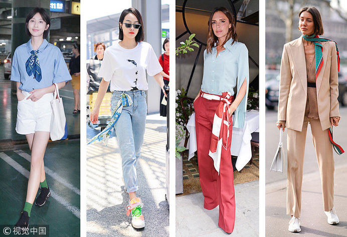 絲巾是作為女性脖子上的物品,早在中世紀(jì)就開始用于抵御寒冷的衣物,但是隨著時(shí)尚的演繹,絲巾早已經(jīng)成為了女性必備的服裝配飾之一。從而街拍中有著無(wú)數(shù)的的絲巾系法,絲巾已不再是保暖這么簡(jiǎn)單,更多的另一種時(shí)尚?。▓D片來(lái)源:視覺(jué)中國(guó))