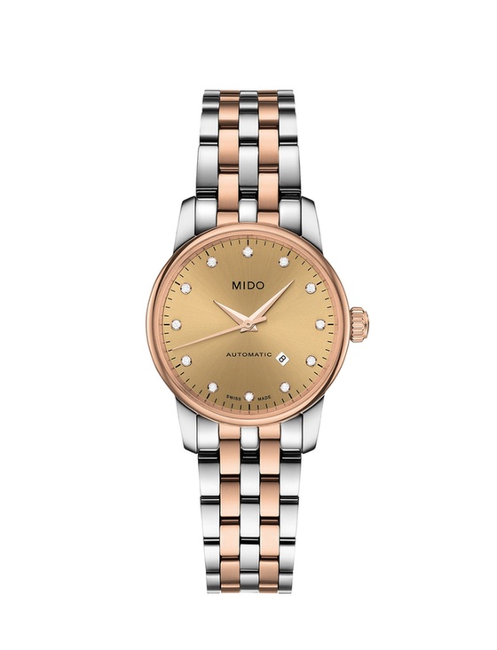 瑞士美度表貝倫賽麗系列玫瑰金間金款真鉆女士腕表,以雷恩歌劇院巧妙的曲面設(shè)計以及圓潤的線條為設(shè)計靈感來源,采用色澤為頂級威士頓級別的真鉆,完美的切割工藝,襯托出每一個人類靈魂工程師的高尚圣潔;光線從一個切割面驚艷反射于另一個切割面,鉆石嵌在婉約溫潤的圓形包鑲中,耀如光芒,散發(fā)出極致奪目的柔美光彩。腕表閃亮的金屬質(zhì)感表盤搭配PVD鍍玫瑰金不銹鋼間金表帶,無不傳遞著典雅的知性魅力,于腕間演繹別具特色的嫻靜氣質(zhì)。