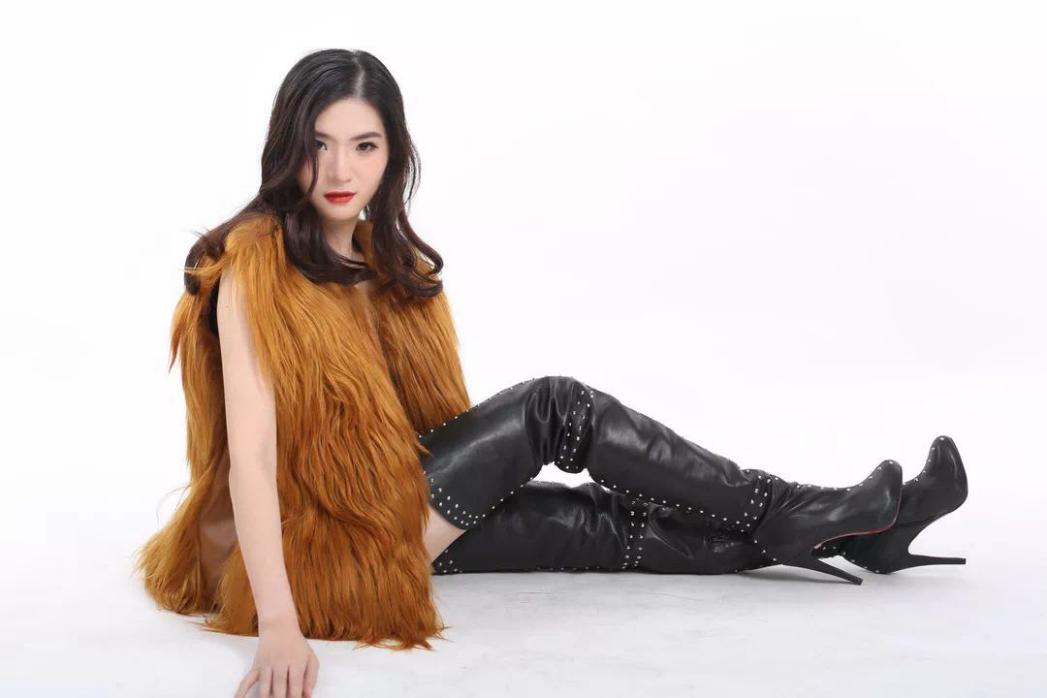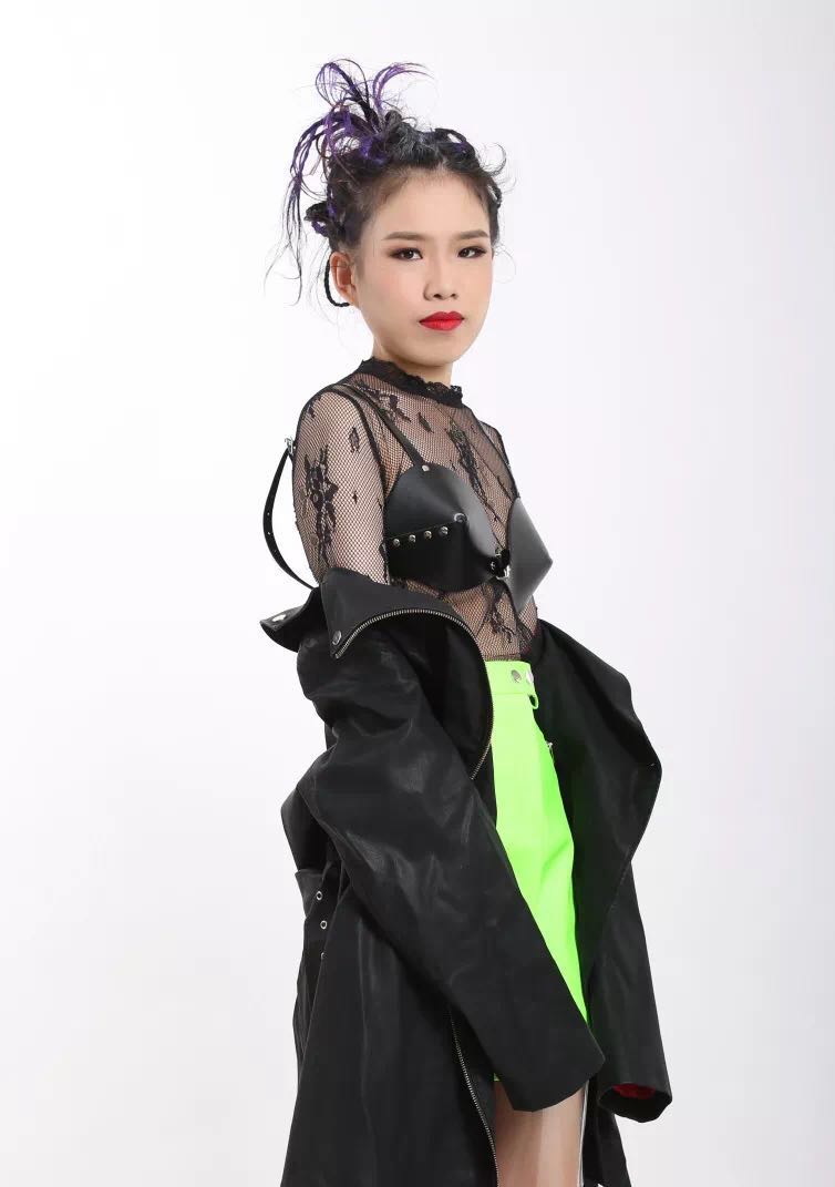 Nana長(zhǎng)得特別冷艷的,內(nèi)心像藏了一頭野獸,如果穿日韓風(fēng)的話會(huì)埋沒(méi)了她的氣場(chǎng)。這次給她選擇了現(xiàn)在國(guó)際最流行的PVC靴子,搭配了熒光色的短裙,她完全可以撐起來(lái)。