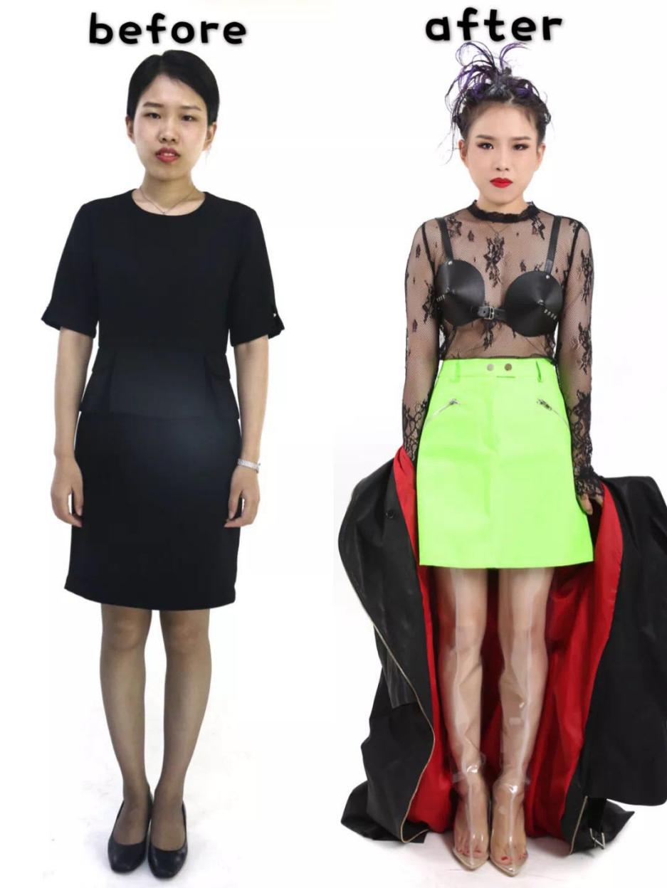 她 是一位已婚少女(fu),素面朝天上班族,養(yǎng)生派,天天在辦公室給同事泡茶喝,日常打扮比較斯文(也就是保守),恨不得夏天還穿高領(lǐng)毛衣那種。改造前,一直抓著小編手說(shuō),“我哪里都不露!”