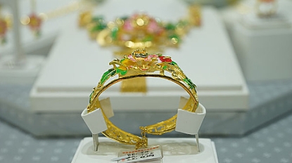 下一組造型以艾爾頓·約翰最鐘愛的長袍為基礎(chǔ)。無論在家中還是巡演途中,他總是身披一襲長袍。這是為了向古時(shí)的奢靡風(fēng)格致敬——即法國君主和英國紳士的審美趣味。古馳將這一精神融入裝飾華麗、充滿異域風(fēng)情的長袍款演出服中。大部分長袍采用色彩斑斕的絲綢(其中很多飾有花卉圖案),配上對(duì)比強(qiáng)烈的青果領(lǐng)。后背上的裝飾圖案各異——貓、靈蛇、咆哮的老虎和一對(duì)幼豹,其中一件的肩膀后方飾有白色水晶鑲嵌的“Elton John”字樣。