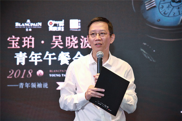 現(xiàn)場,寶珀中國區(qū)副總裁廖信嘉先生談起了發(fā)起“寶珀·吳曉波青年午餐會”的初衷:“寶珀是一個匠人,也是世界上第一個注冊誕生的腕表品牌,歷經(jīng)283年至今活力不減。寶珀在過去10多年間有近50項全新機芯創(chuàng)新,是頂級品牌中最具有創(chuàng)新能力的品牌。正因如此,寶珀也希望能在如何成為一個百年品牌、如何去發(fā)展和更新自己等方面,與中國青年企業(yè)家分享更多的經(jīng)驗?!?nbsp;