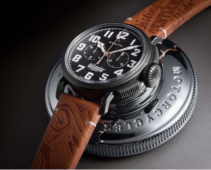 為傳承復(fù)古機(jī)車的文化與精神,助力慈善募款,真力時(shí)特別推出飛行員系列TYPE20 TON-UP御行計(jì)時(shí)碼表DGR特別版腕表,全球限量五枚,搭載真力時(shí)自產(chǎn)4069型EL Primero自動(dòng)機(jī)芯,以5赫茲(每小時(shí)36000次)提供動(dòng)力。這枚酷炫的表款兼具復(fù)古與運(yùn)動(dòng),向忠于挑戰(zhàn),不隨波逐流的騎士致敬。