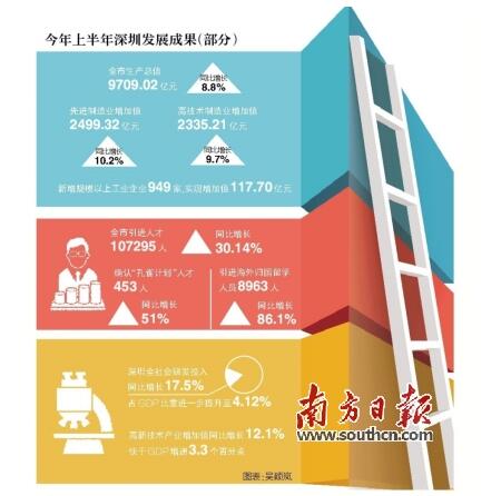 創(chuàng)新是深圳率先實(shí)現(xiàn)成功轉(zhuǎn)型的亮麗名片,是深圳率先實(shí)現(xiàn)動力轉(zhuǎn)換的制勝秘訣。如果說,作為特區(qū),深圳之“特”過去更多地體現(xiàn)在政策探路,那么,現(xiàn)在則更多體現(xiàn)在轉(zhuǎn)型創(chuàng)新。近年來,深圳經(jīng)濟(jì)特區(qū)把創(chuàng)新作為城市主導(dǎo)戰(zhàn)略,先后制定了全國首部國家創(chuàng)新型城市總體規(guī)劃和促進(jìn)科技創(chuàng)新的地方性法規(guī),出臺自主創(chuàng)新“33條”、創(chuàng)新驅(qū)動發(fā)展“1+10”若干措施等一系列政策措施。經(jīng)過多年不懈的努力,深圳創(chuàng)新驅(qū)動發(fā)展取得了積極成效,創(chuàng)新正加快向高端前沿邁進(jìn),從跟跑、并跑向領(lǐng)跑躍升。在創(chuàng)新的驅(qū)動下,深圳實(shí)現(xiàn)了新常態(tài)下動力轉(zhuǎn)換和新一輪轉(zhuǎn)型升級,保持了有質(zhì)量、有效益、可持續(xù)的發(fā)展。事實(shí)為證:今年上半年,深圳全社會研發(fā)投入增長17.5%,占GDP比重進(jìn)一步提升至4.12%;高新技術(shù)產(chǎn)業(yè)增加值增長12.1%,快于GDP增速3.3個百分點(diǎn),呈現(xiàn)出“逐季攀高、質(zhì)量提升、結(jié)構(gòu)優(yōu)化、動力增強(qiáng)、趨勢向好”的鮮明特點(diǎn)。