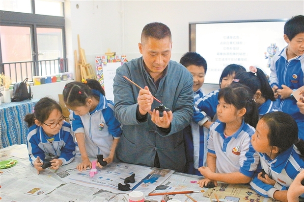 12月第一期非遺文化課堂已于上周四下午開始?;搓柲嗄喙反硇苑沁z傳承人張華偉一行來到深圳市龍華區(qū)外國語學校,為同學們分享了泥泥狗捶泥、煮染等制作工藝和文化歷史。