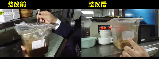 4月19日記者回訪發(fā)現(xiàn)該餐廳負(fù)責(zé)人整改態(tài)度積極,針對(duì)檢查中指出的問題進(jìn)行了逐項(xiàng)整改,包括:后廚外專門騰出一個(gè)空間擺放食材及工具,不再占用廚房區(qū)域;生熟食已做到分開放置;倉(cāng)庫(kù)擺放整齊有序;消毒柜溫度已可以達(dá)到90度以上;新設(shè)置一個(gè)粗加工區(qū)與烹調(diào)區(qū)隔離開;被查封的涼菜間重新進(jìn)行了問題排查與改善。經(jīng)過轄區(qū)食藥監(jiān)管部門的復(fù)評(píng)后目前該餐廳的餐飲量化等級(jí)已恢復(fù)至B級(jí)。該餐廳負(fù)責(zé)人也向記者表示,“星期三查餐廳”不僅是檢查,還給予他們對(duì)后廚管理的手把手的指導(dǎo),提升很大,后續(xù)將繼續(xù)加強(qiáng)后廚管理,給消費(fèi)者一個(gè)安全健康的就餐環(huán)境保障。