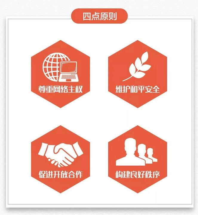 習近平曾指出,互聯網發(fā)展是無國界、無邊界的,利用好、發(fā)展好、治理好互聯網必須深化網絡空間國際合作,攜手構建網絡空間命運共同體。要理直氣壯維護我國網絡空間主權,明確宣示我們的主張。為此,習近平提出“四點原則”和“五點主張”:
