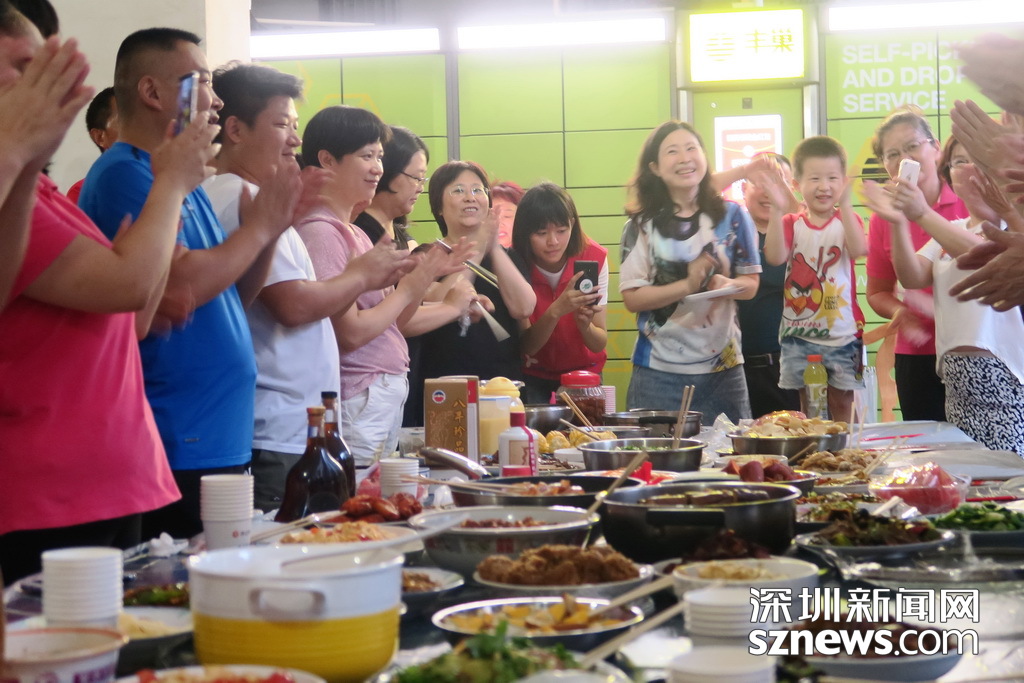 深圳新聞網(wǎng)訊 (記者 劉婷 林毓瑾 通訊員 張晉)住在鋼筋水泥森林,一墻之隔不往來(lái),擦肩而過(guò)不搭話,這或許是城市鄰里關(guān)系的“痛點(diǎn)”,但深圳水木華庭的業(yè)主在8月11日舉辦了別開(kāi)生面的“百家宴”,卻吃出濃濃的鄰里情,小編隔著屏幕都聞到了“愛(ài)的味道”…… 為慶祝水木華庭新一屆業(yè)委會(huì)的誕生,水木華庭業(yè)主微信群的群主楊莉建議11日在4棟B單元架空層,開(kāi)個(gè)“百家宴”。這個(gè)主意一出來(lái),水木華庭的業(yè)主們紛紛響應(yīng),業(yè)委會(huì)成員和業(yè)主大會(huì)籌備組成員也都紛紛表示:屆時(shí)將爭(zhēng)取貢獻(xiàn)一兩個(gè)拿手好菜! 于是乎,業(yè)主們分頭行動(dòng),籌備工作有條不紊地進(jìn)行。8月11日晚,水木華庭入伙15年來(lái)的首次“百家宴”如期舉行。