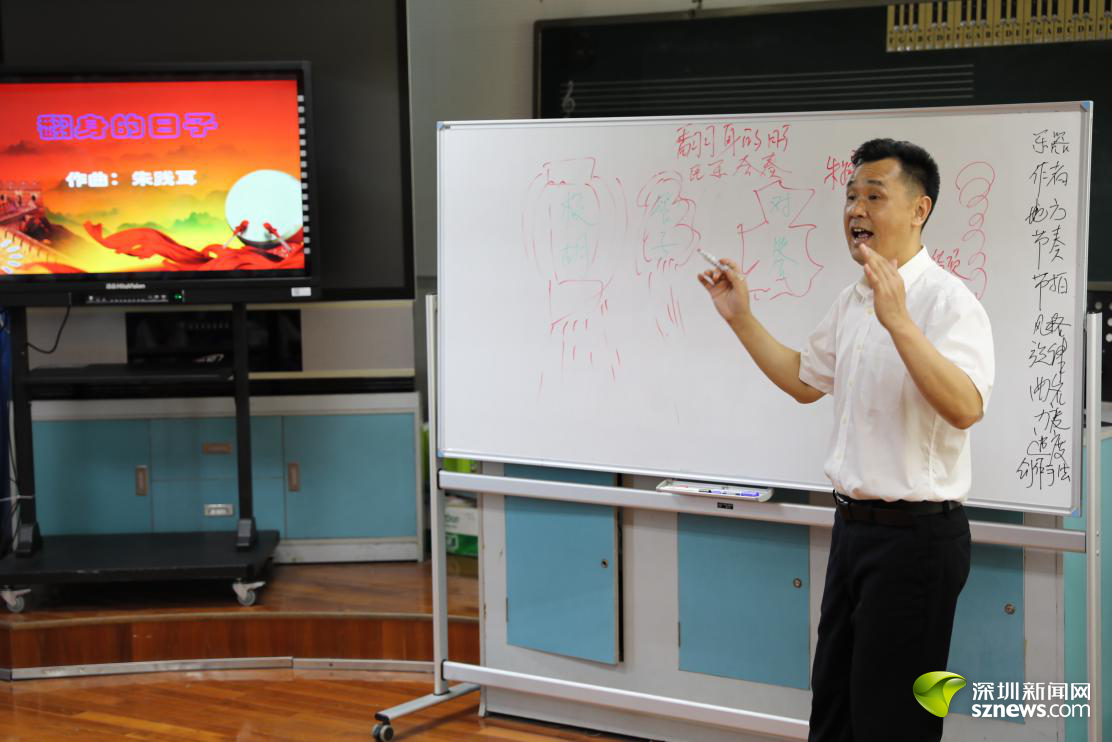 深圳新聞網(wǎng)訊 (記者 曹園芳)“1994年大學(xué)畢業(yè)進(jìn)入湖南省衡陽藝術(shù)學(xué)校,從事專業(yè)舞蹈學(xué)科教學(xué),帶著一群追夢少年心隨舞動(dòng),這是我教育之夢的開始?!彼?,從事音樂教育工作24年以來,在教學(xué)中堅(jiān)持“以美育人、以文化人”,以提高學(xué)生藝術(shù)素養(yǎng)與人文素養(yǎng)為己任,他就是小學(xué)高級教師、福田區(qū)皇崗小學(xué)教務(wù)主任戴智。