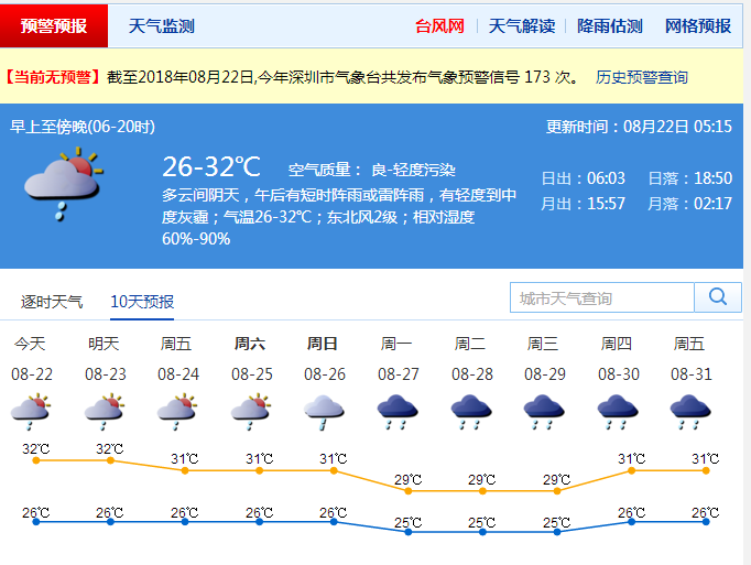 深圳新聞網(wǎng)訊 灰霾、陣雨齊上陣。多云仍是今日天氣的主格調(diào),午后還會出現(xiàn)短時陣雨或雷雨。部分時間仍有輕度到中度灰霾,能見度下降至10公里以內(nèi)。氣溫依舊較高,最低氣溫在26℃左右,最高氣溫升至32℃左右,市民應(yīng)注意防暑降溫。