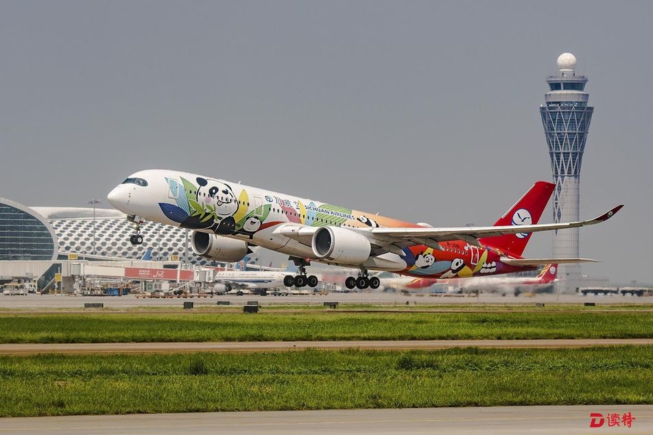 原標(biāo)題:川航A350飛機(jī)首秀深圳 “熊貓彩繪”驚艷深圳機(jī)場
