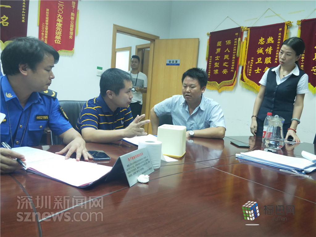 福田區(qū)城管局人員給購物公園北園管理處解釋扣分項。