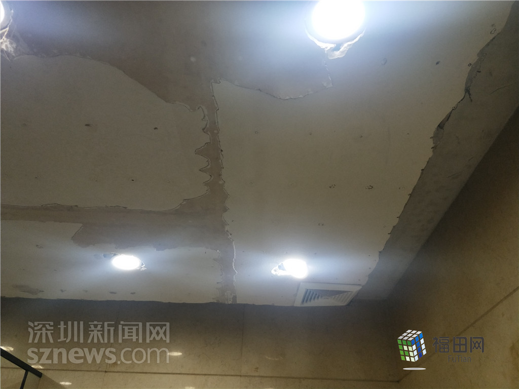 購物公園負(fù)一樓公廁由于使用年代較久,天花板破舊。